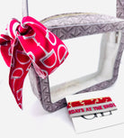 Add a little something extra to your Clear bag with one of our Signature Gameday Scarves. Made of 100% silk, this custom fabric twilly is sure to elevate your gameday look. One side is printed with an iconic horsebit print while the opposite side has a complimentary classic stripe print. Tie it around the handle of your bag, wear it in your hair, or tie it onto your boots! 32 Inches x 2 Inches