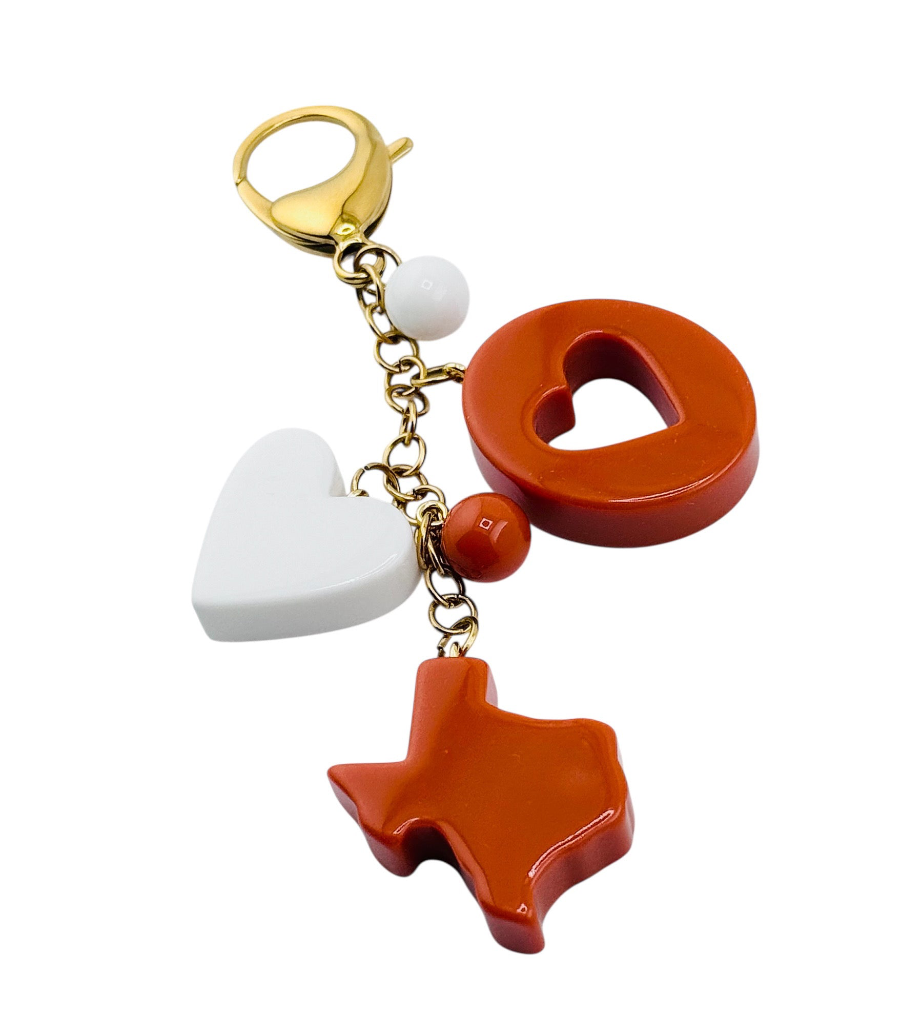 Wear your team.  Flaunt your style with the Luxe League bag charm.  Dress up any bag with the latest hand bag trend hot off the runways. Gold, Lobster Claw attachment for ease of use.  Team centric symbols and colors.   Available in Burn orange and white  More Teams arriving soon.