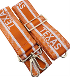 Dress up your crossbody bag with our College Town strap. This style is exclusive to Gameday Luxe and features a subtle, Designer inspired pattern in rich Orange and white tones. The strap measures 2 inches wide and 48 inches fully extended. Available with gold hardware, The strap is made with a light and comfortable cotton/ poly blend.
