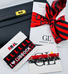Add some western flare to your arm party. This self tie, black tassel bracelet is one size fits all. Boot design embroidered in red.