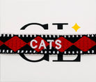 One size fits all navy and red cotton/ poly bracelet with white trim. Cats embroidered in white thread. Bracelet self ties.