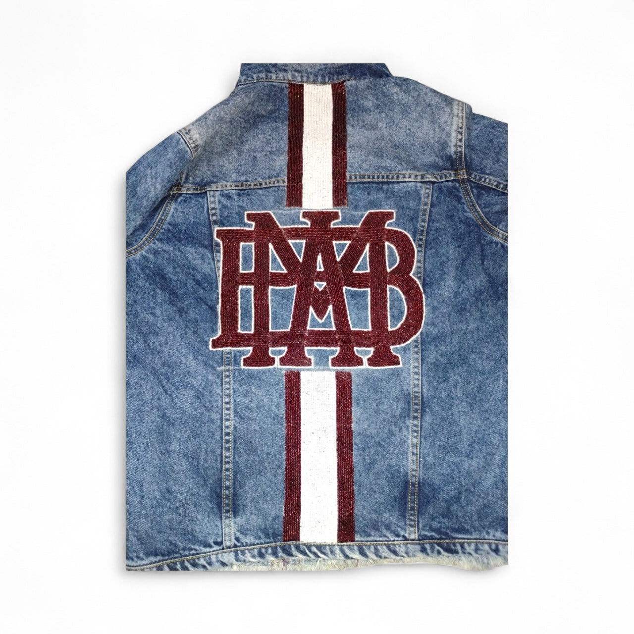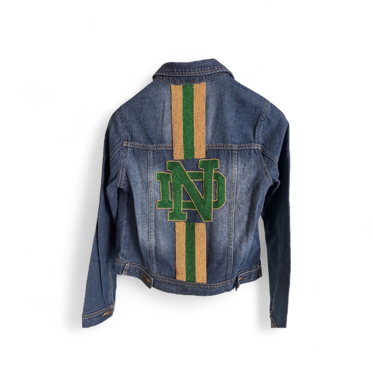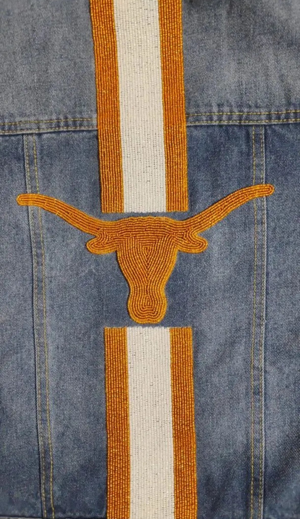 Hand-beaded detailing adds texture, sparkle, and attitude to a timeless favorite. Every bead is placed by hand, creating a one-of-a-kind design you won’t find anywhere else. Soft, structured denim in a loose fit. Sizes XS-XL. Lead time approx 3-4 weeks. Custom items are Final sale. If you have any questions, please email us at customerservice@gamedayluxe.com.